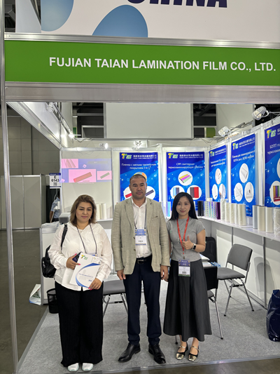 Fujian Taian Lamination Film Co., Ltd. Също така активно участва в събитието. Кабината на Таян се намираше в E6143. По време на изложбата щандът на Taian привлече голям брой посетители. Екипът на Taian се ангажира в задълбочена комуникация и обмен с клиенти от цял свят с голям ентусиазъм. Представихме подробно различния термичен ламиниращ филм на компанията, търпеливо отговори на въпросите на клиентите и внимателно изслушахме техните нужди и предложения. Чрез комуникация лице в лице Таян не само придоби по-добро разбиране на динамиката и тенденциите на международния пазар, но и успешно показа своята сила и предимства пред клиентите. Много клиенти проявиха голям интерес към продуктите на Taian, обменяха информация за контакт и достигнаха няколко намерения за сътрудничество на място. В същото време срещнахме и някои стари клиенти на изложбата, допълнително разбрахме техните нужди, разработихме различни филми за предварително покритие за тях и допълнително консолидирахме кооперативните отношения.