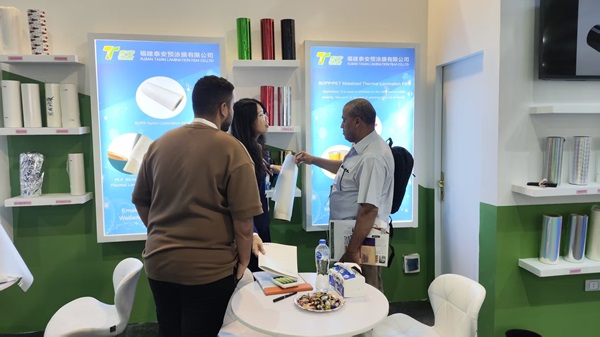 През 2025 г.,Fujian Taian Lamination Film Co., Ltd.Направи зашеметяваща изява на Международната изложба за опаковане, печат и хартия в Египет (Печат 2 пакет). Номерът на кабината беше 2A4 - 1. Дизайнът беше прост и голям, с логото на марката "Магия„Показва се на видно място, което не само предаде професионалния образ на предприятието, но и създаде атмосфера на отворена комуникация. На изложбения щанд, чрез показване наТермичен ламиниращ филмПродукти във физическа форма и мултимедийни табла, тя цялостно представя: от продуктови форми до сценарии на приложение, от технически характеристики до иновативни предимства, ясно и интуитивно демонстриращи твърдите сили на Taian вТермичен ламиниращ филмПолейте към глобалната аудитория, привличайки голям брой професионални посетители, връстници и купувачи, за да спрат и да обърнат внимание.